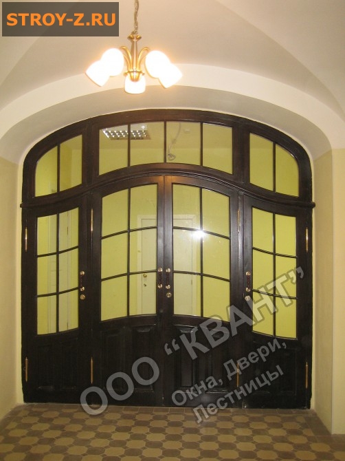 Деревянные двери, окна и лестницы от ООО Квант Санкт-Петербург.Производим деревянные окна, межкомнатные и входные двери, лестницы из ценных пород дерева. Любые формы и размеры в том числе окна и двери ГИОП. Полный спектр услуг - вызов мастера, замер, проектирование, изготовление, доставка, демонтаж, установка, реставрация, отделка, вывоз мусора. ООО Квант. Спб.